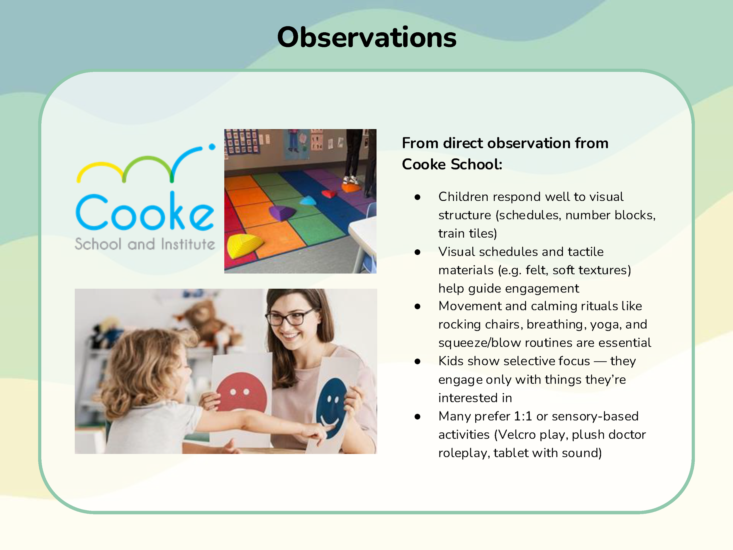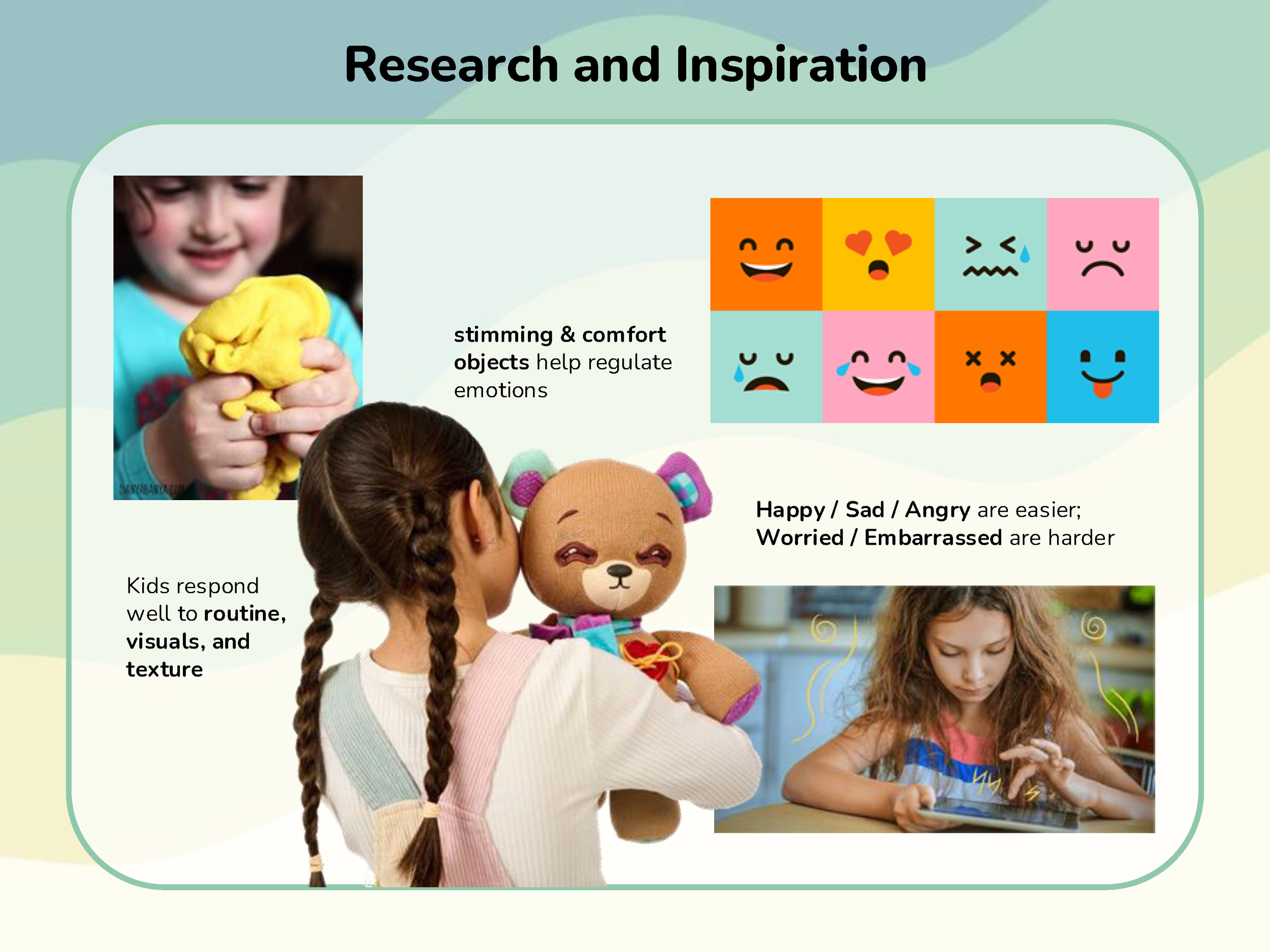 A sensory plush toy developed through observation at Cooke School, a learning environment for children with autism spectrum disorder. After visiting the classrooms and interacting with students and teachers, I identified key needs, including emotional expression and visual routines. Inspired by these insights, I designed Broccoli Buddy to be a non-stigmatizing and emotionally supportive toy that encourages tactile play and caregiver bonding. Its weighted bottom and soft, textured fabrics provide grounding comfort and sensory input, while its playful broccoli form invites imaginative interaction in both home and therapeutic settings.